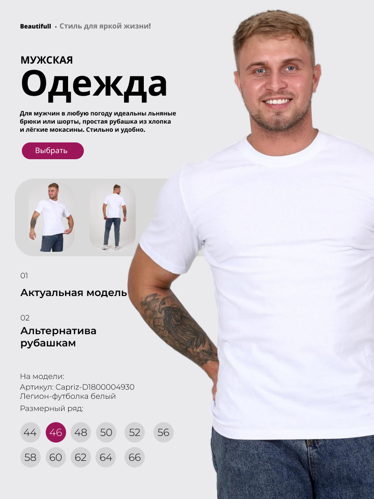 Самая большая коллекция как больших, так и базовых размеров. Мы не ограничиваем вас в выборе: предлагаемый размерный ряд - от 40 до 74
