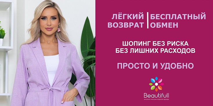Мы работаем с фабриками-производителями напрямую и без посредников. В Интернет-магазине Beautifull только подлинные товары по фабричным ценам