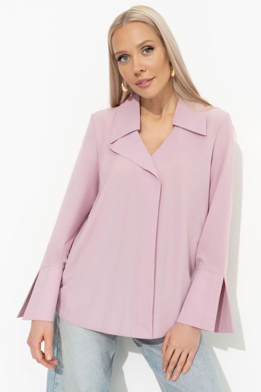 Блуза розовая с разрезами на рукавах от компании Charutti. Модель свободного силуэта, выполнена из плательного полотна "ниагара". V-образным вырез горловины с отложным воротником. Срытая линия пуговиц. Рукава длинные втачные. Отличный выбор для офисных модниц.