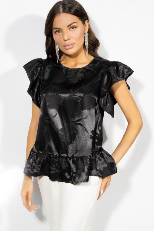 Блузка нарядная атласная чёрная с рукавами-крылышки