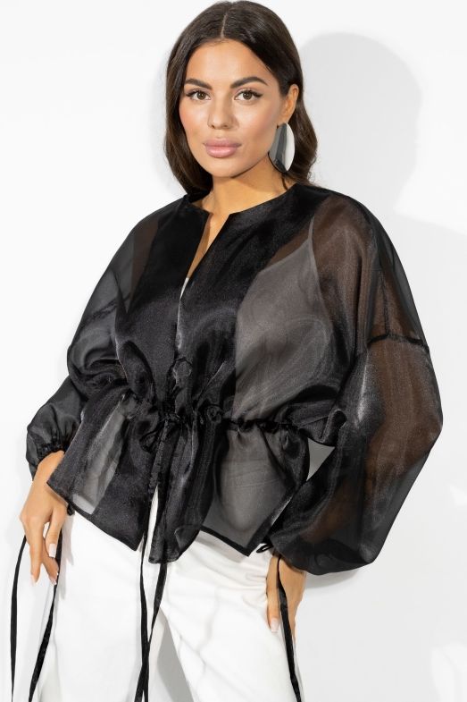 Бомбер чёрный из органзы 50 размера
