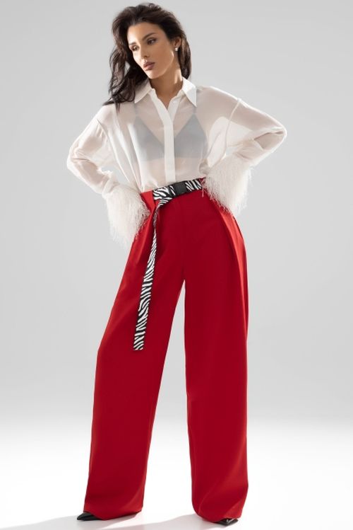 Брюки широкие красные от производителя Charutti. Модель свободного силуэта, выполнена из костюмной ткани "барби". Притачной пояс с контрастным ремешком. По бокам удобные карманы. По переду эффектные защипы. Идеальный выбор для создания неповторимого образа.