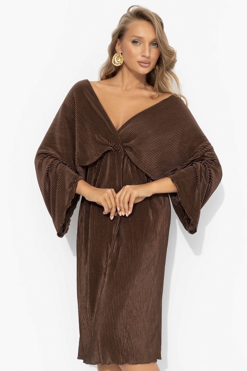 Платье коричневое из трикотажа-гофре