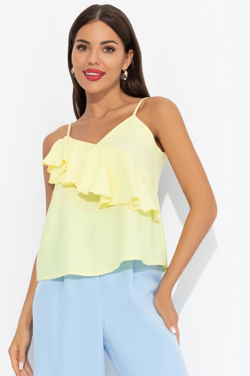 Топ жёлтый льняной с воланом