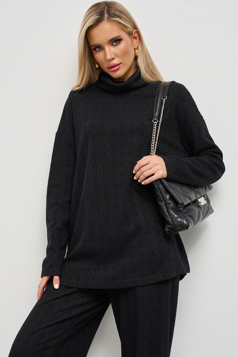 Джемпер чёрный свободный с разрезами по бокам