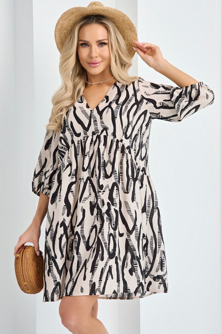 Платье А-силуэта бежевое с завязками по спинке