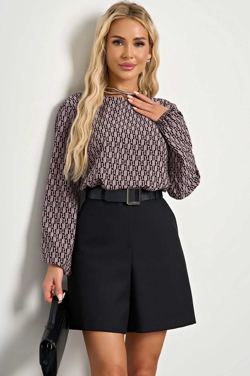 Блузка шифоновая чёрно-зелёная с длинными рукавами