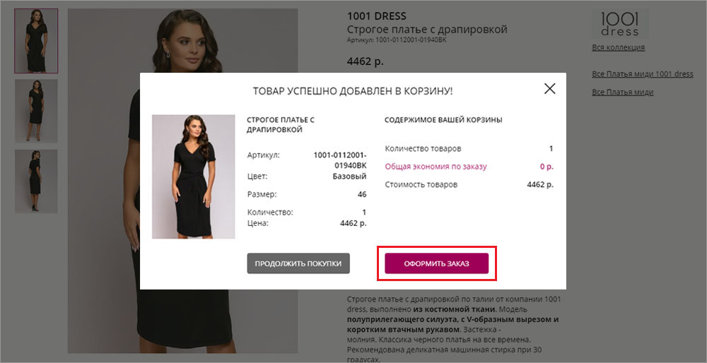 4. В появившемся окне выберите «Оформить заказ»: