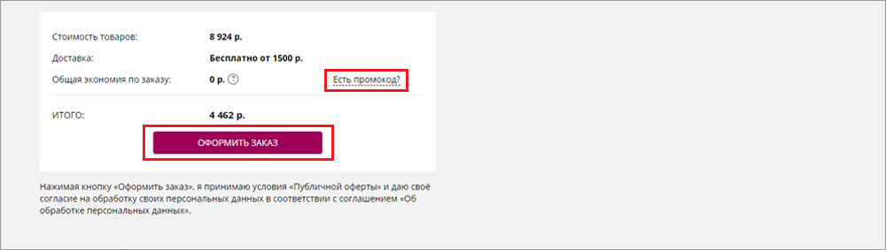 10. Нажмите кнопку «Оформить заказ». Если у вас есть промокод на скидку нажмите «Есть промокод?»: