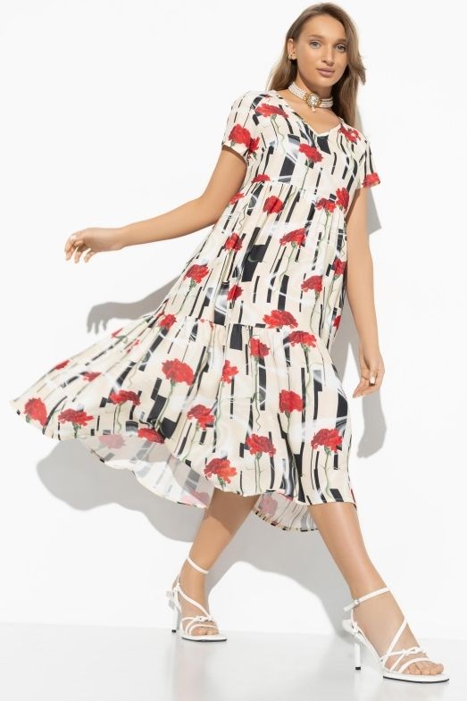 Платье трикотажное А-силуэт с воротником-стойка Особенно актуально, цветы