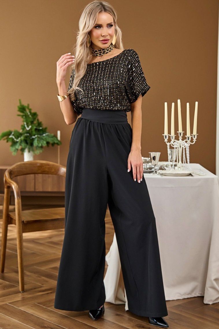 Комбинезон нарядный чёрный с поясом