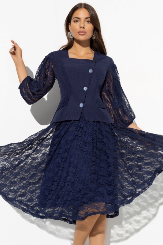 Костюм синий с отделкой из кружева
