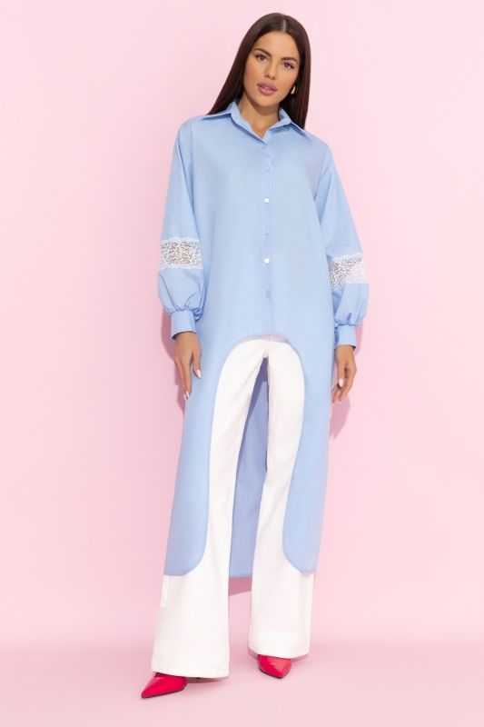 Рубашка сине-белого цвета свободного кроя с акцентной спинкой