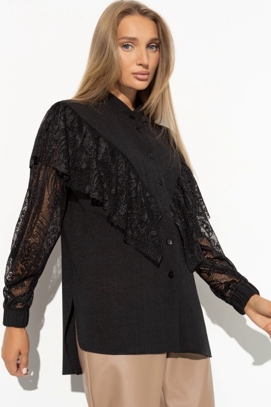 Блузка с притачными манжетами по рукавам и низу изделия 52 размера