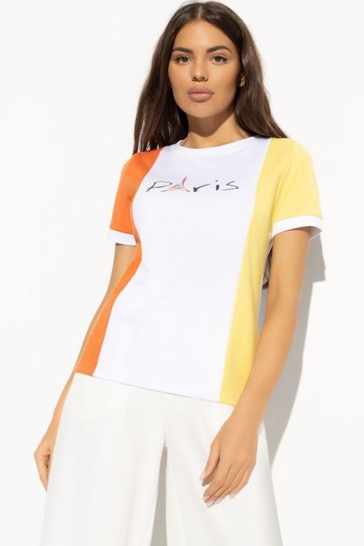 Футболка комбинированная с принтом