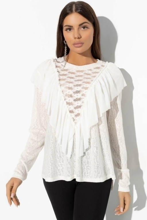 Лонгслив из кружевной ткани с рюшами