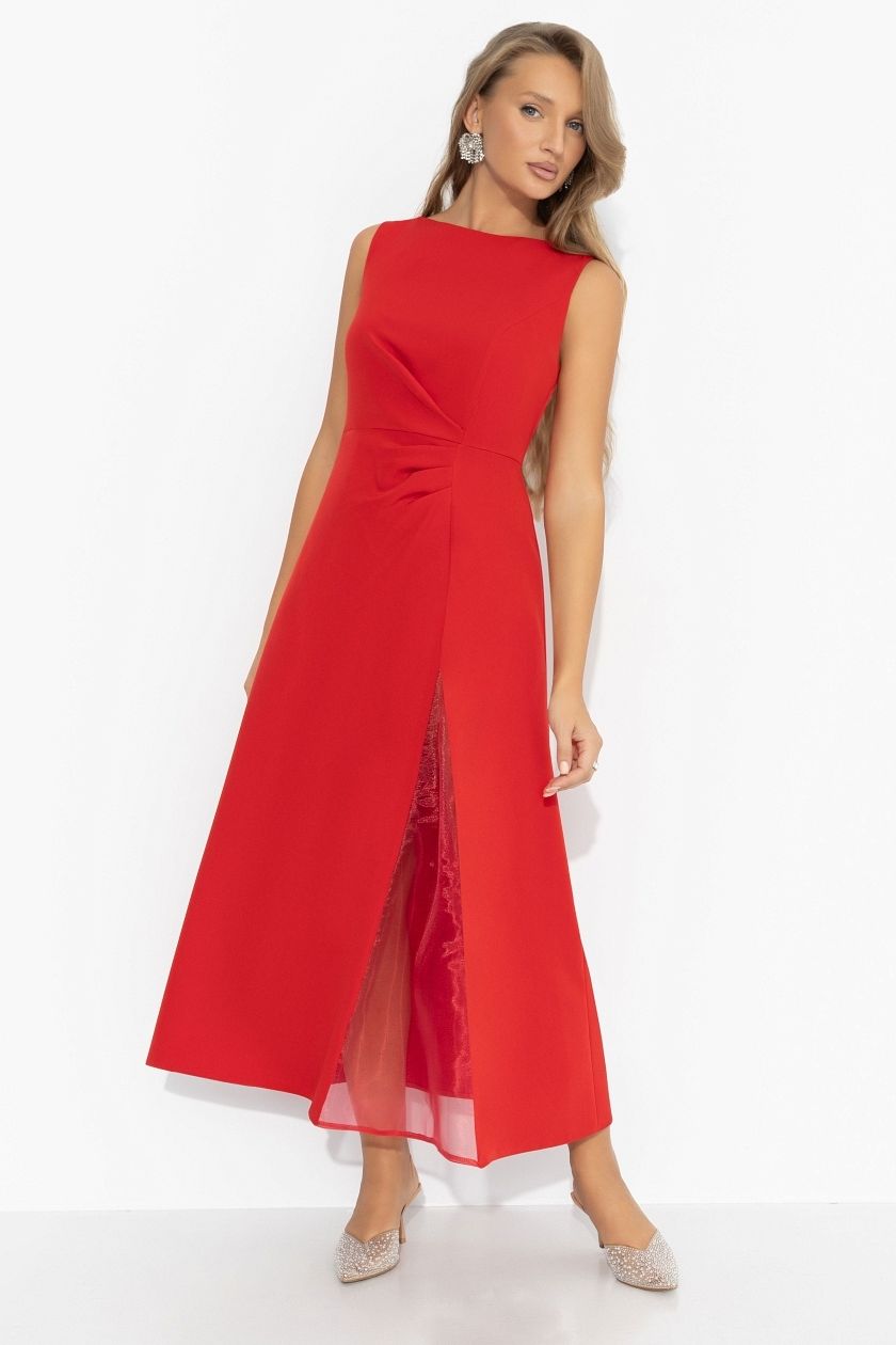 Платье длинное красное без рукавов