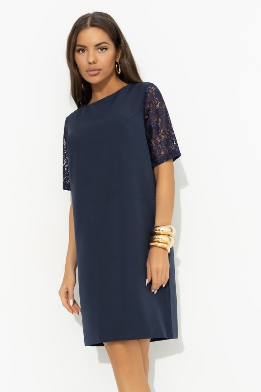 Платье синее с рукавами из гипюра от компании Charutti. Модель прямого силуэта, выполнена из костюмного ткани "барби". Круглый вырез горловины. Втачной короткий рукав. В боковых швах функциональные карманы. Это Ваш отличный образ, в котором вы всегда чувствуете себя уверенно.