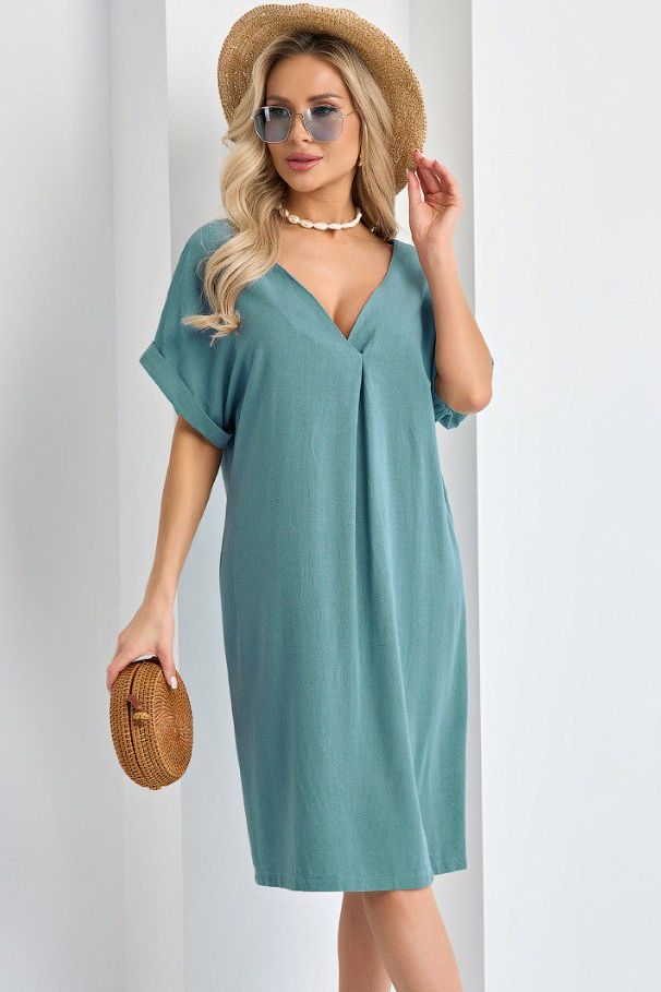 Тёмно-зелёный трикотажный джемпер с V-образным вырезом