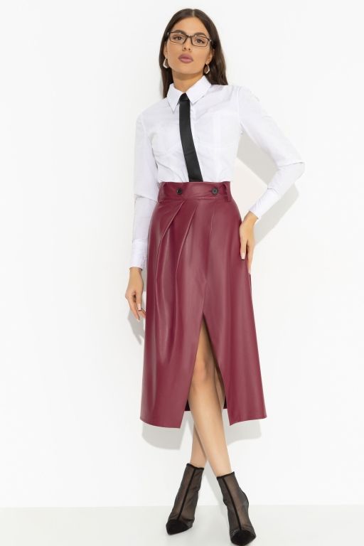 Юбка бордовая из экокожи на запах