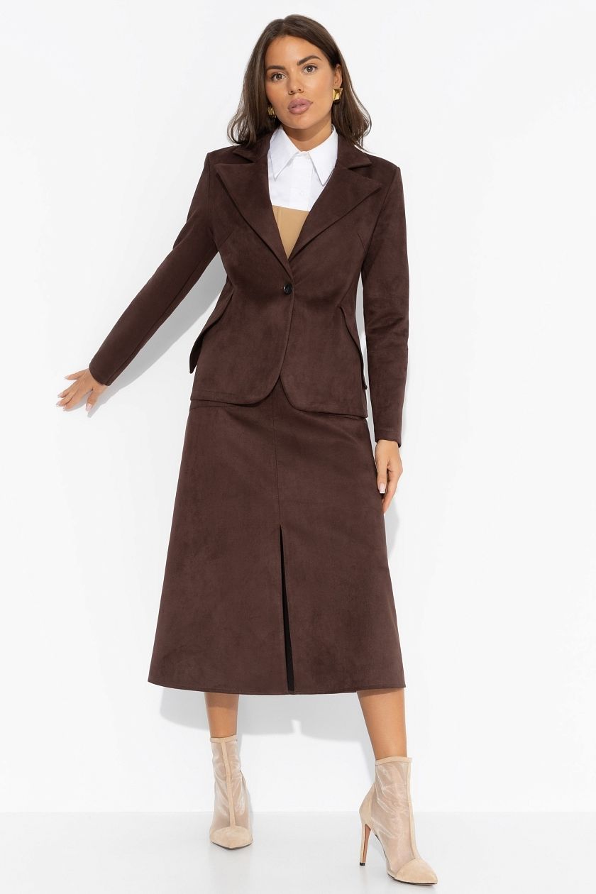 Юбка коричневая из замши с разрезом